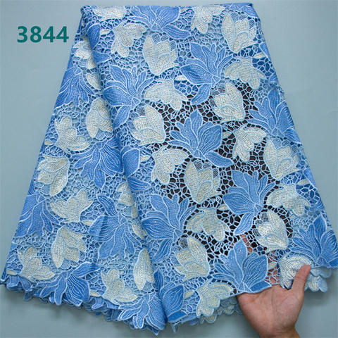 Blauwe En Witte Afrikaanse Koord Kant Stof Met Steentjes Hoge Kwaliteit Guipure Water Oplosbare Kant Stof Voor Feestjurken 3844